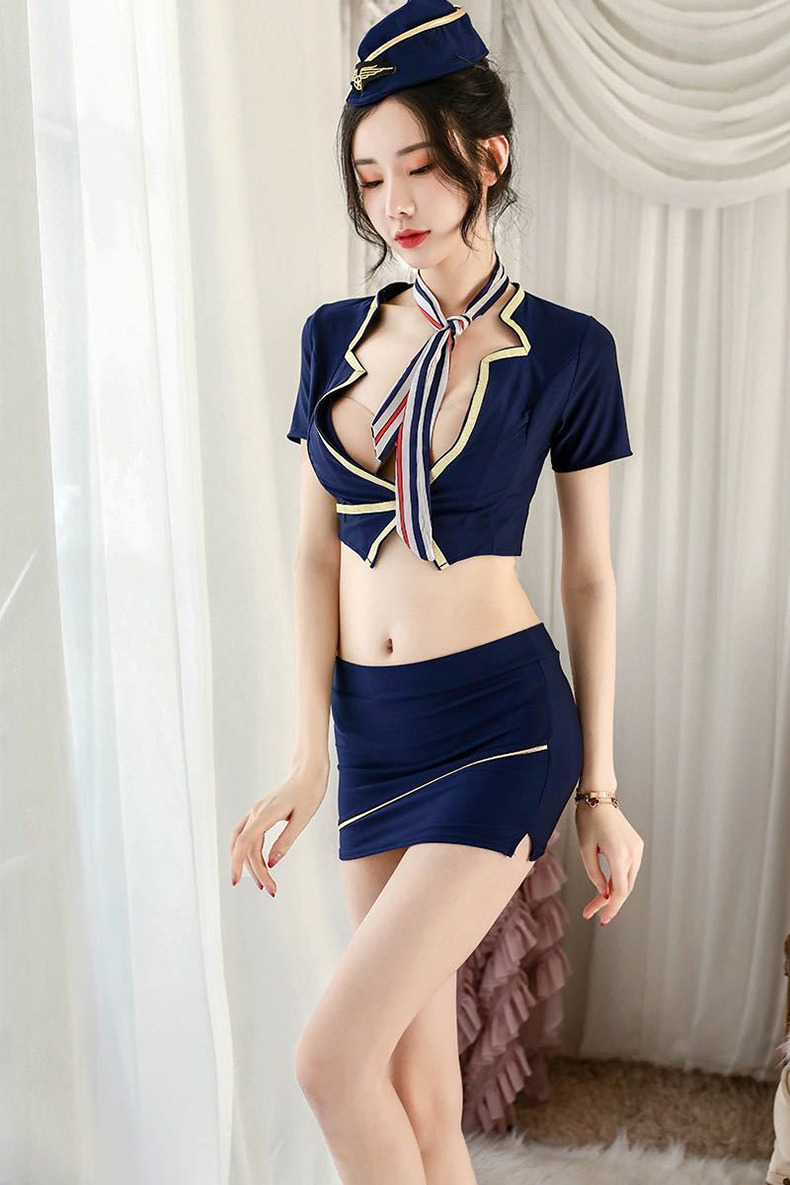 A079 空姐OL誘惑大腿襪網襪絲緞情趣制服趴開襠情趣內衣性感睡衣(Cosplay 丁字褲 情人節)