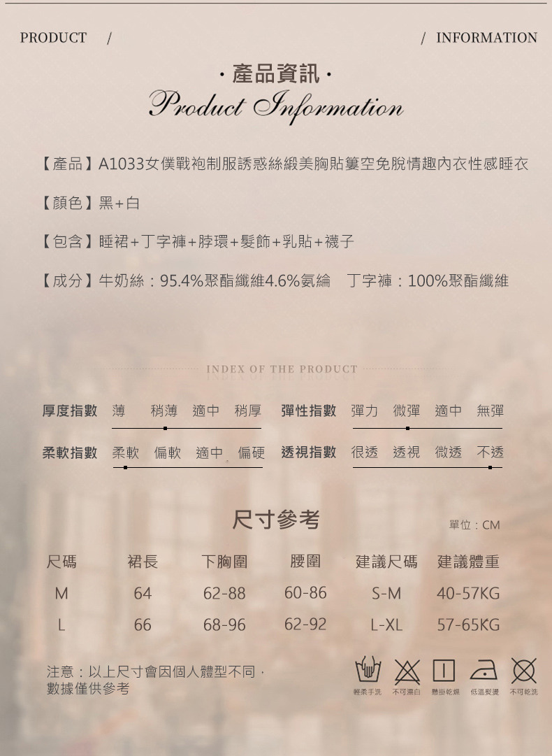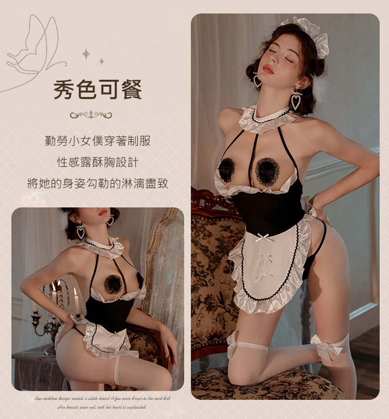 A1033女僕戰袍制服誘惑絲緞美胸貼簍空免脫情趣內衣性感睡衣(女傭 睡裙 丁字褲 情人節禮物)