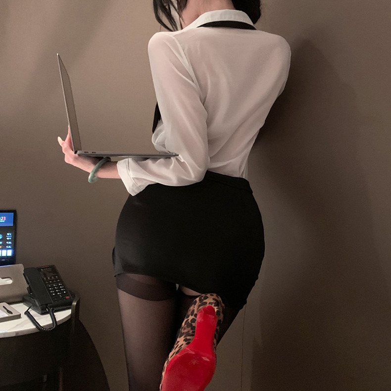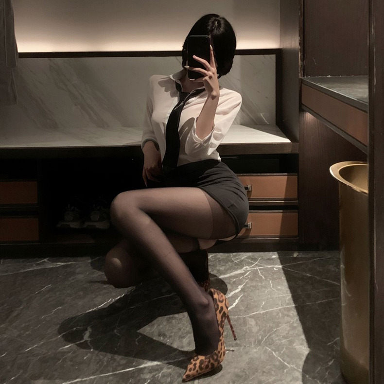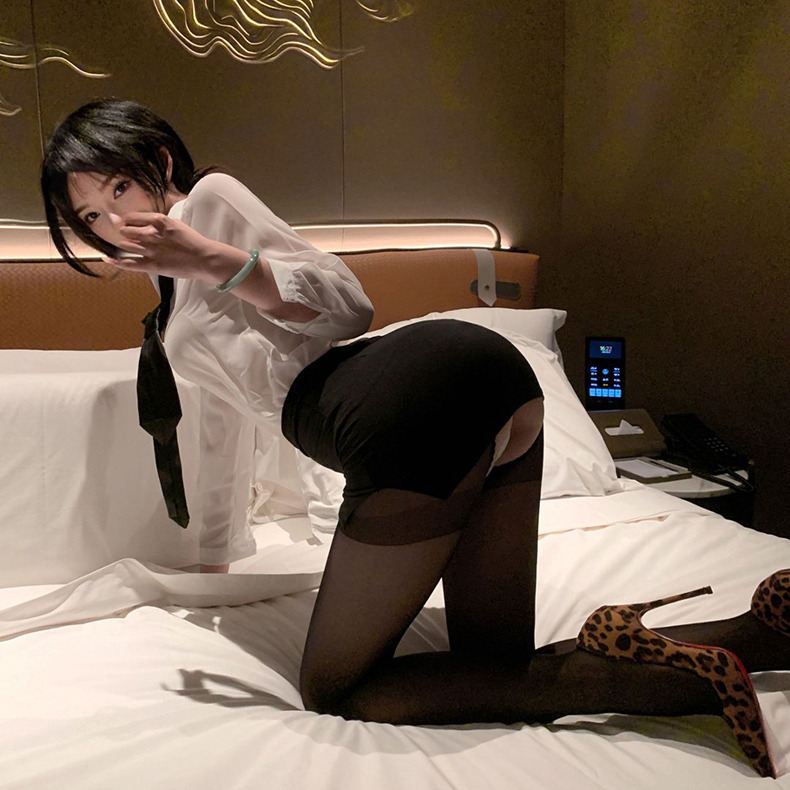 A200性感緊身包臀開襠黑絲OL小秘書制服誘惑免脫情趣內衣性感睡衣(開襠絲襪 丁字褲)