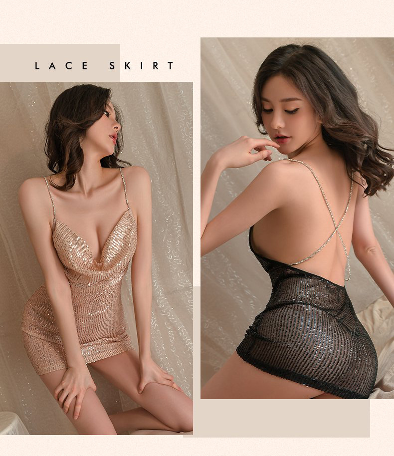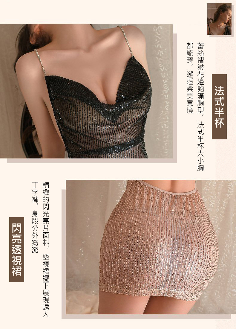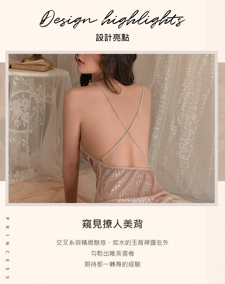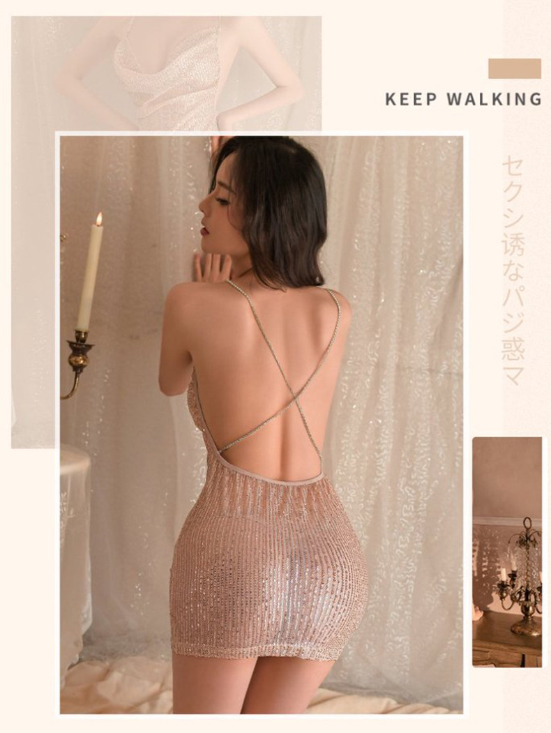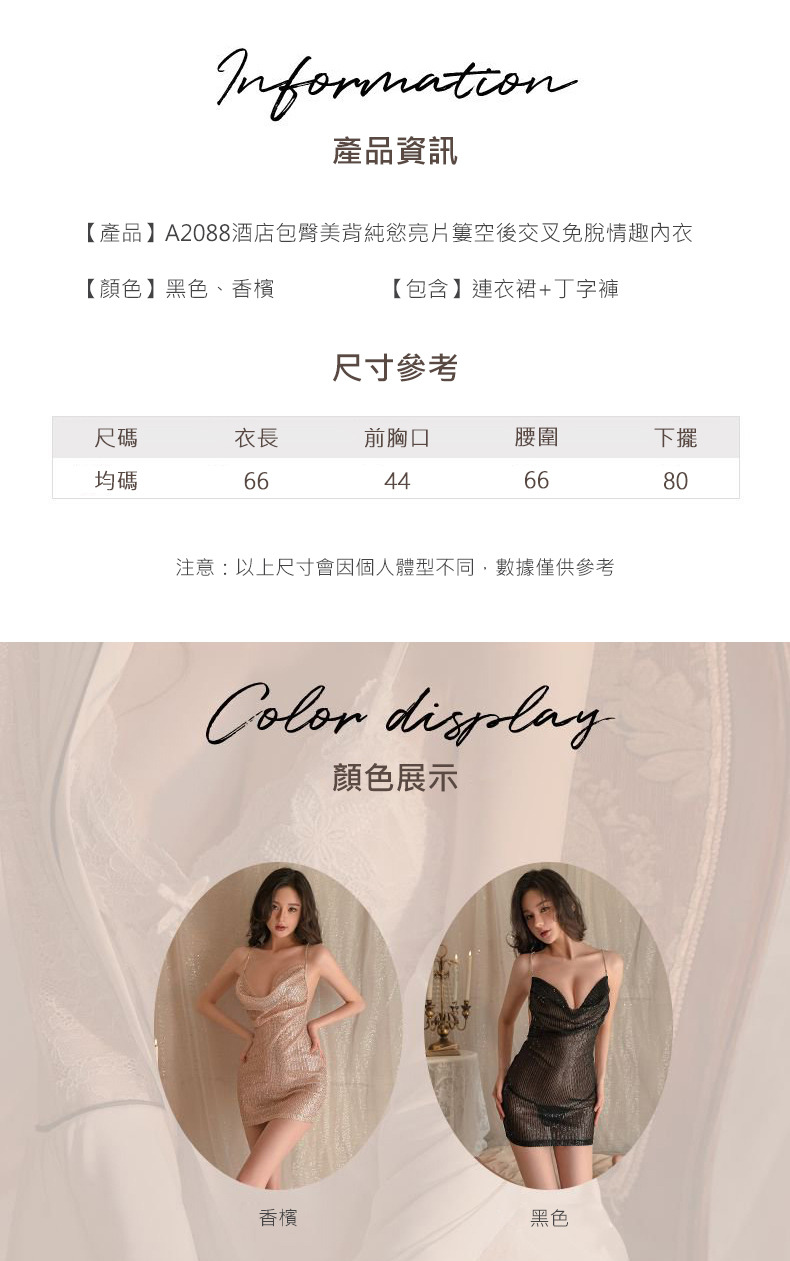 A2088酒店包臀美背純慾亮片簍空後交叉免脫情趣內衣性感睡衣(睡裙 丁字褲 情人節禮物)