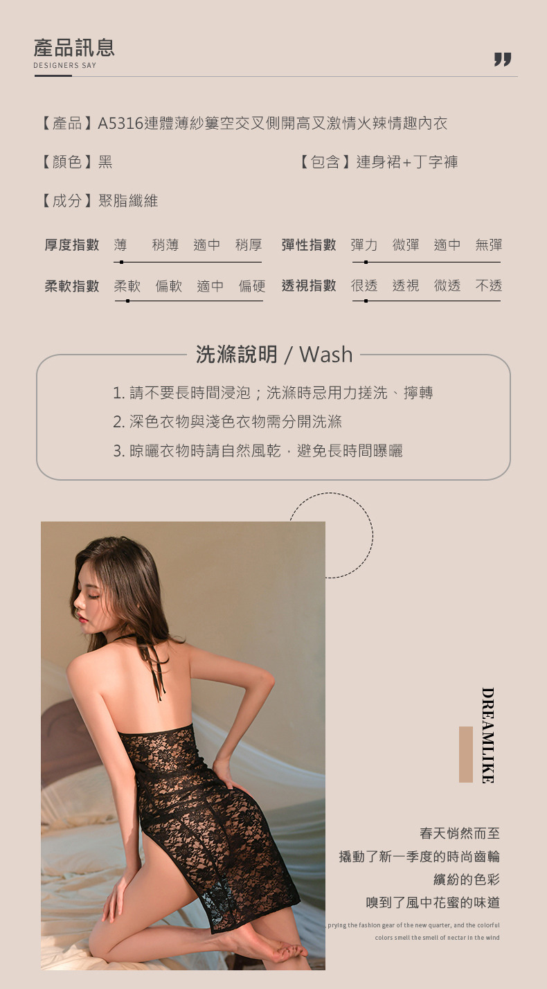 A017法式浪漫深V透視薄紗情趣內衣透明性感吊帶蕾絲睡裙