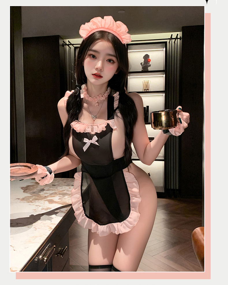 A6431黑絲女僕爆乳綁帶蕾絲簍空免脫情趣內衣性感睡衣(女傭 睡裙 丁字褲 情人節禮物)