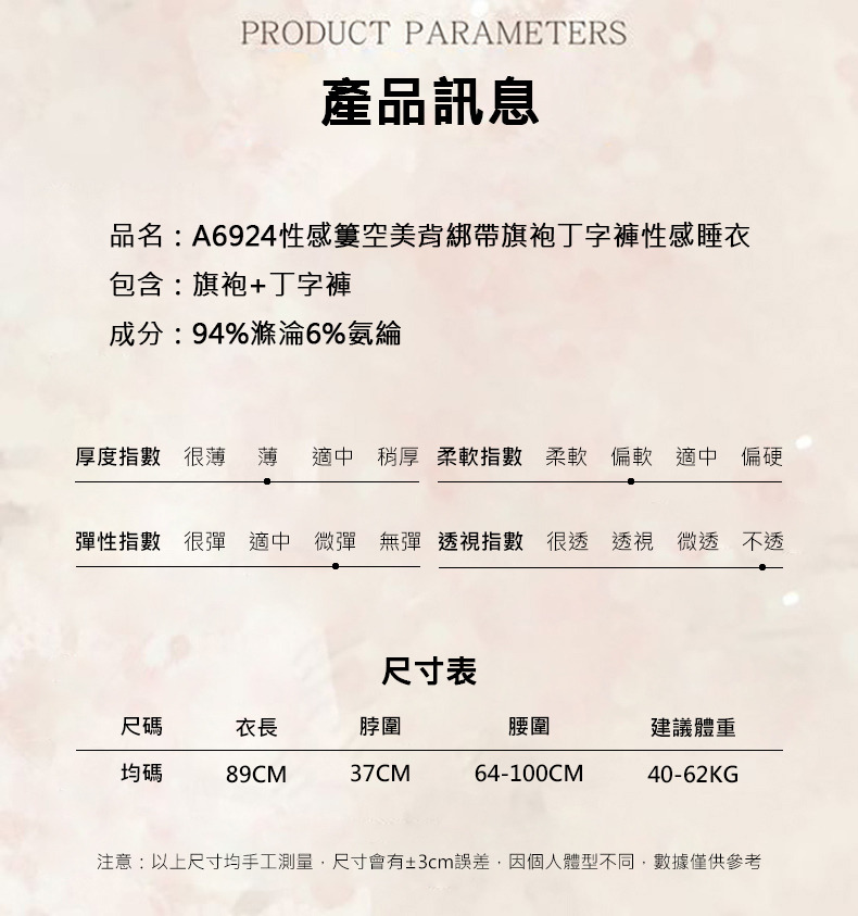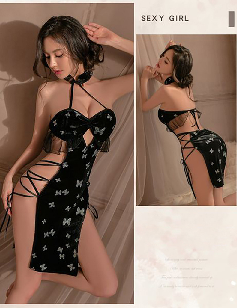 A6924性感簍空美背綁帶旗袍情趣內衣角色扮演丁字褲性感睡衣(Cosplay 情人節禮物)