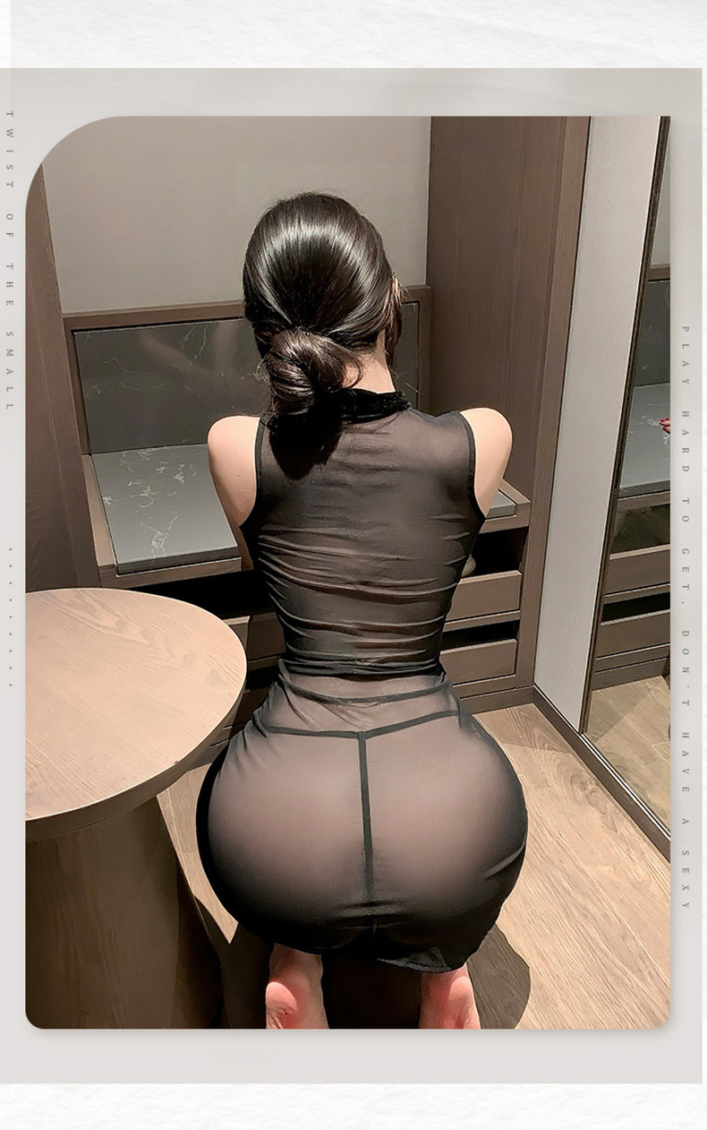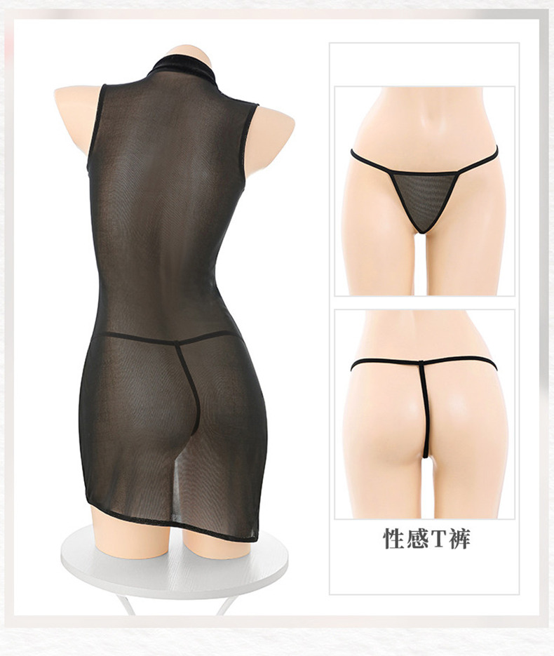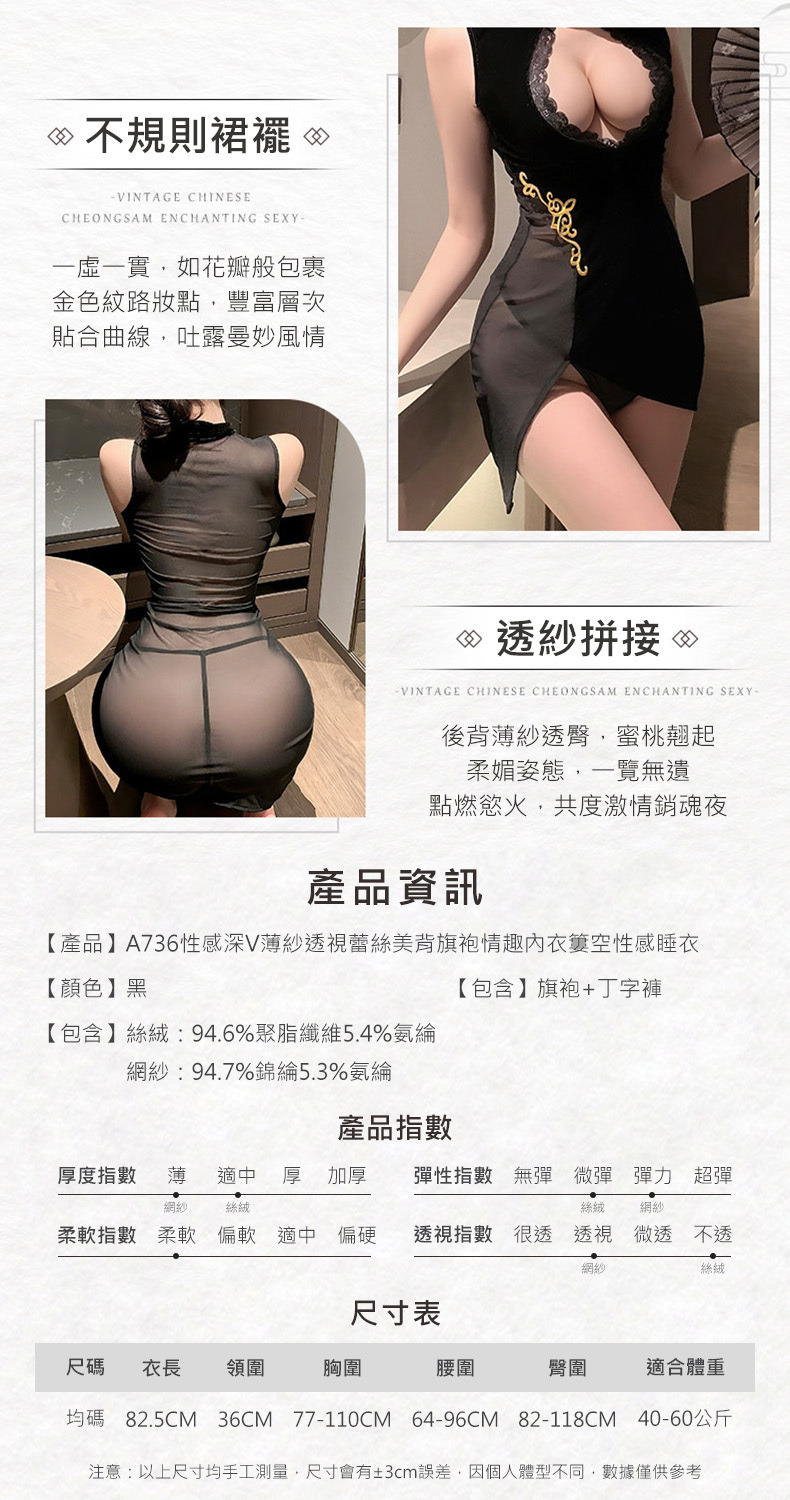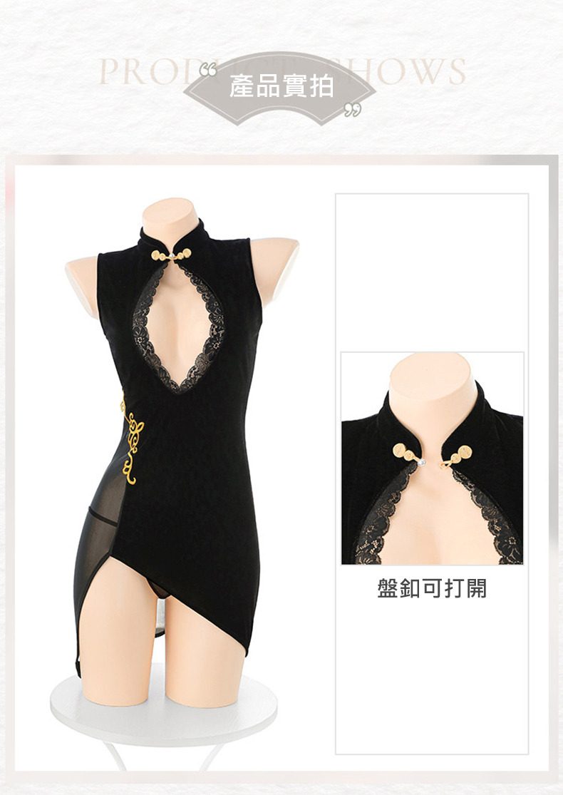 A736性感深V薄紗透視蕾絲美背旗袍情趣內衣簍空性感睡衣(Cosplay 情人節禮物)