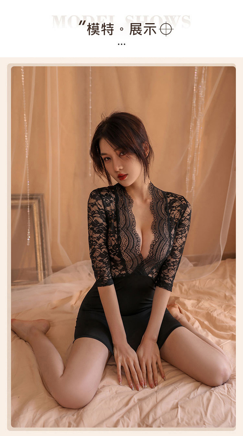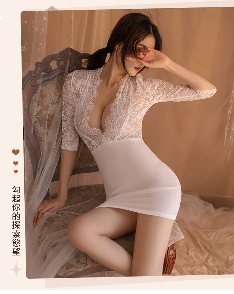 A017法式浪漫深V透視薄紗情趣內衣透明性感吊帶蕾絲睡裙