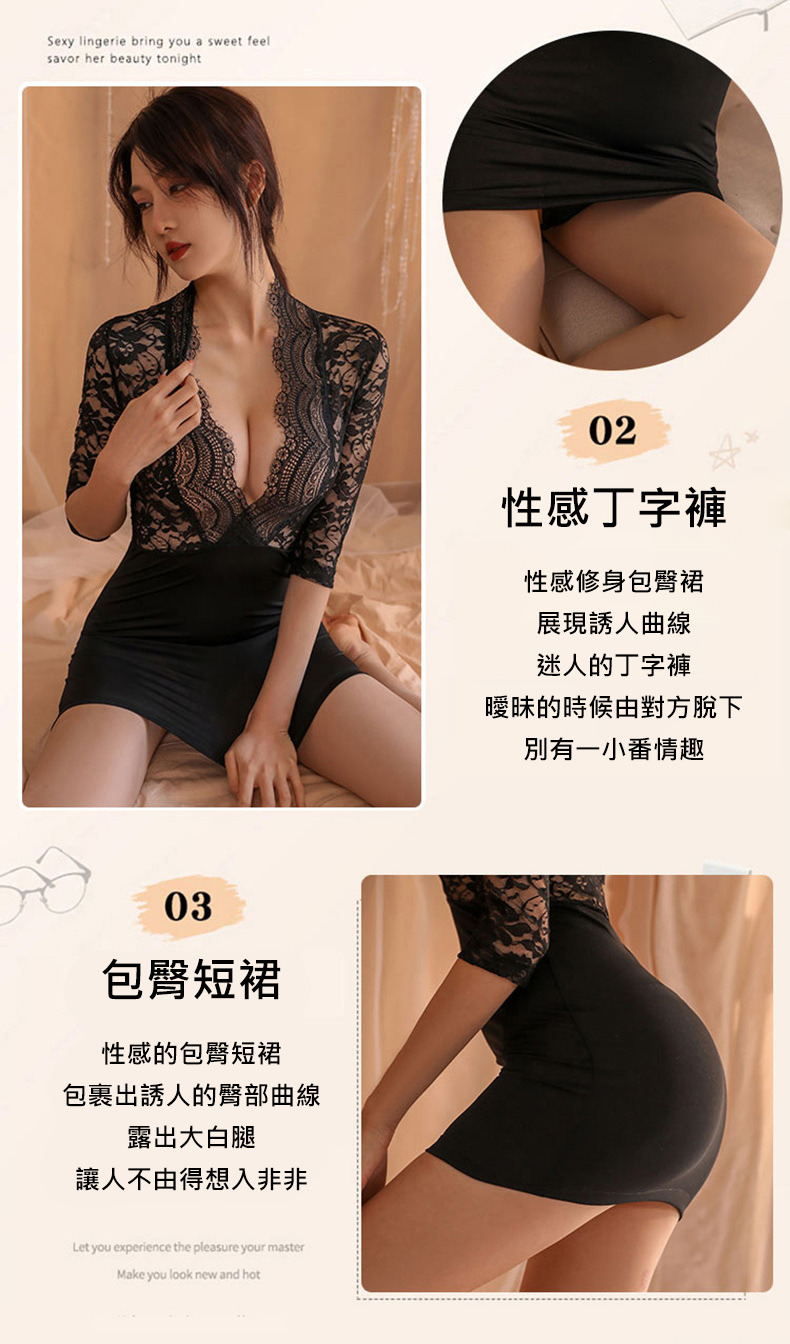 A846夜店酒店包臀蕾絲美背純慾簍空免脫情趣內衣性感睡衣(睡裙 丁字褲 情人節禮物)