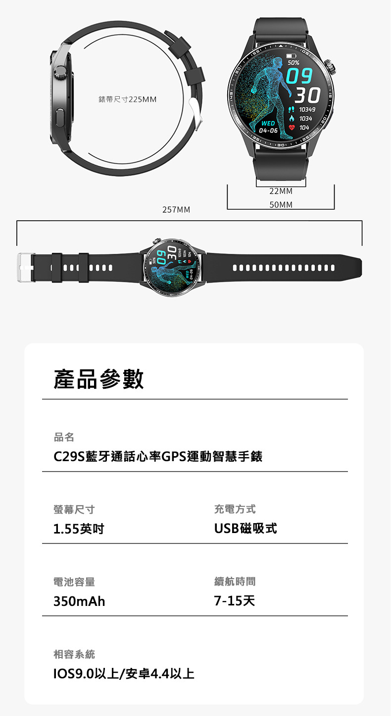 C29S藍牙通話心率GPS運動智慧手錶(心率偵測 運動手環 智慧手環 運動手錶)