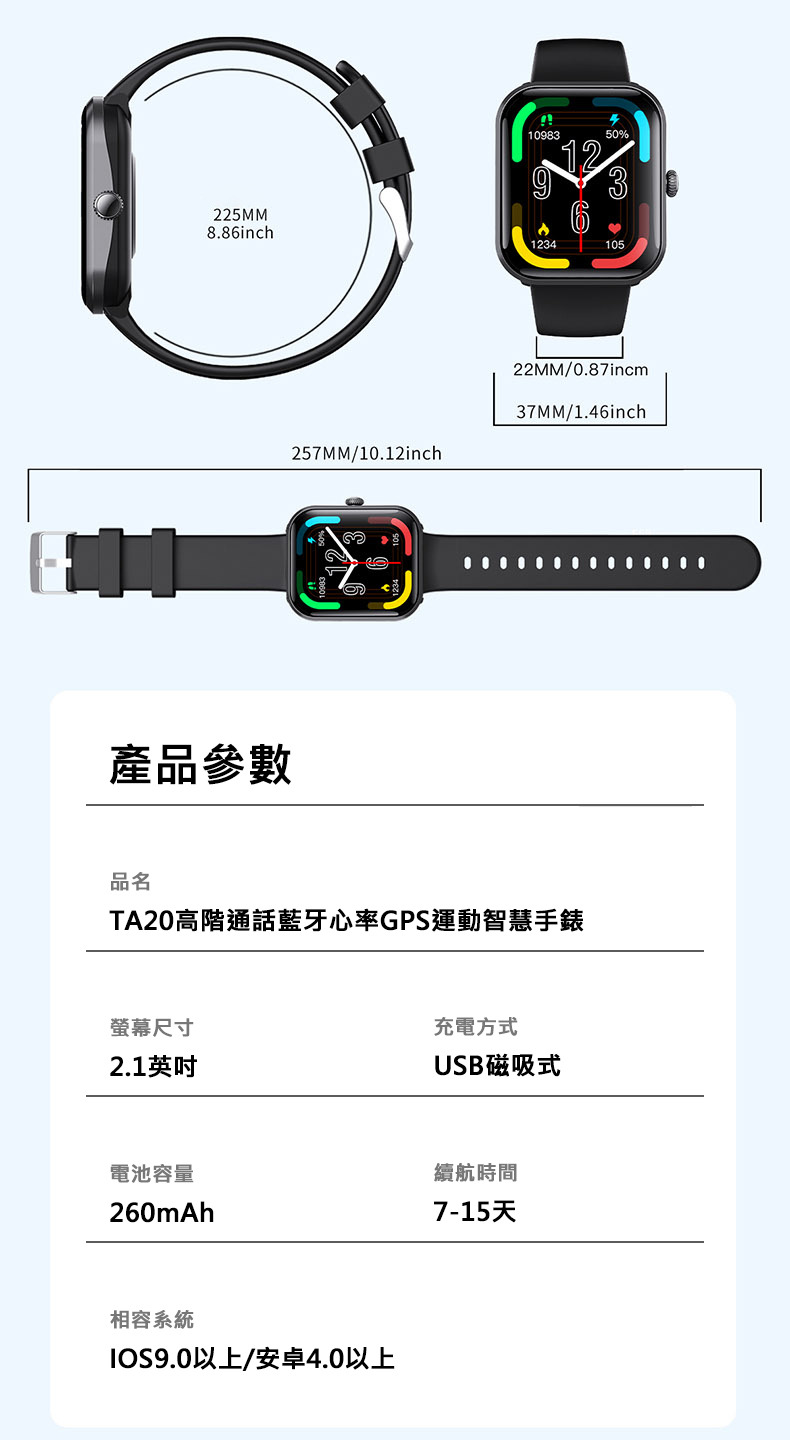 TA20高階通話藍牙心率GPS運動智慧手錶(心率偵測 運動手環 智慧手環 運動手錶)